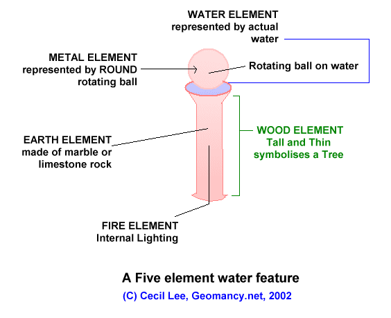 - Earth element is represented by the material of the fountain e.g. granite.